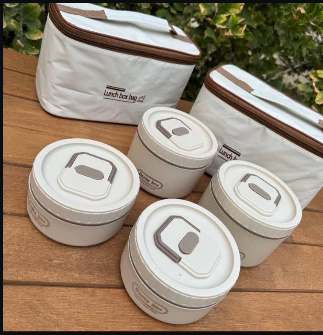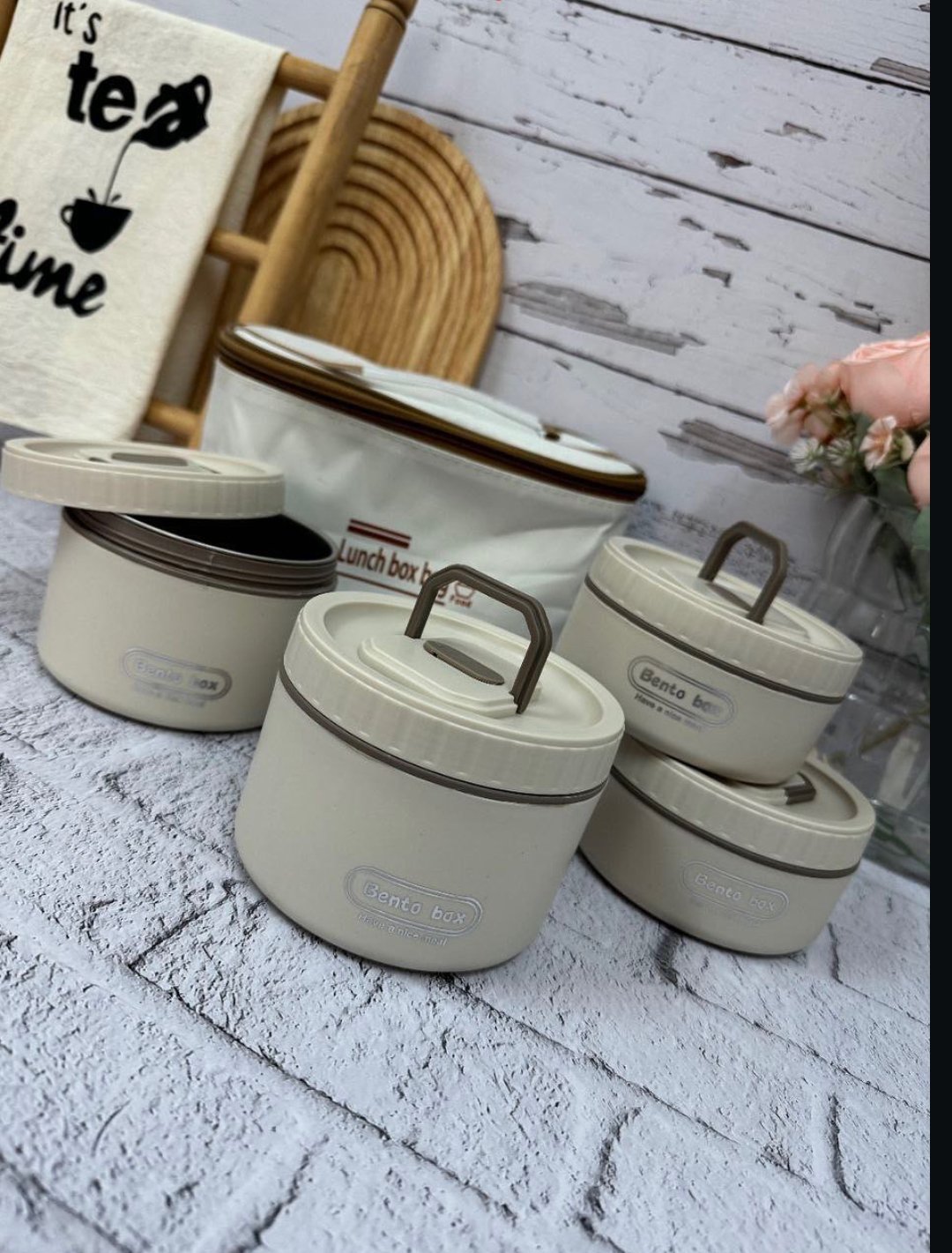 4-in-1 Thermal Lunch Box Set, Stainless Steel Containers, 2x420ml + 2x550ml, with Insulated Bag