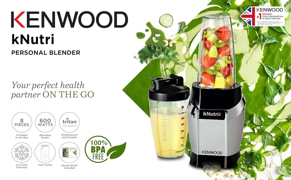 Kenwood Blender Smoothie Maker 700ml and 600ml Tritan Bottles 600w Bsp70.180sl – Stainless Steel Blades And Housing Powerful Motor 2 Speeds Ice Crush Function