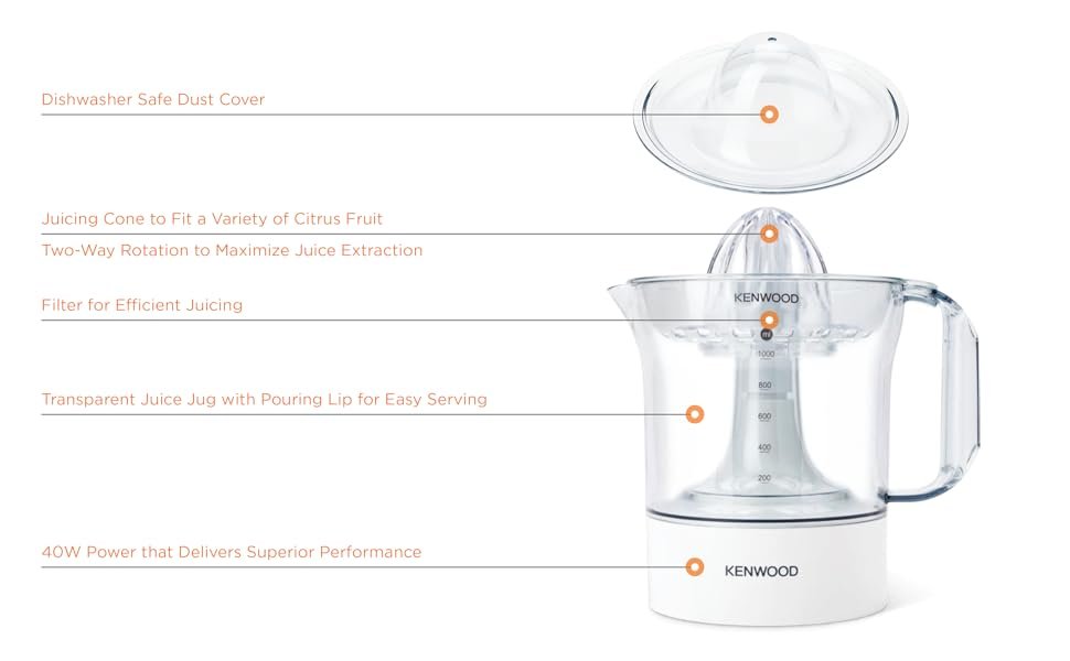 Kenwood Citrus Juicer Plastic Jug 40w Je280a – Transparent Juice Jug Two Way Rotation With Filter