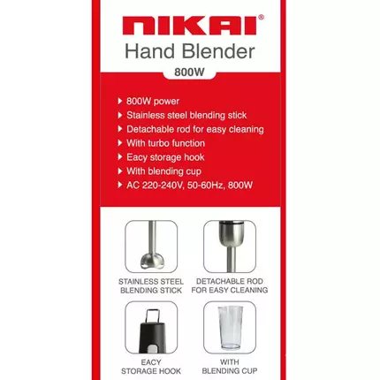 Nikai Hand Blender 600Ml With Cup Stainless Steel Blending Stick 800W Nh8881X Detachable Rod With Blending Cup Easy Storage Hook With Turbo Function