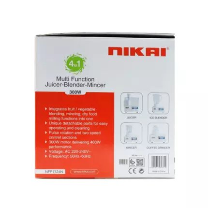 Nikai Juicer Extractor 1.6L 4 in 1 Juicer Blender Meat Chopper and Grinder 300W NFP1724N 2 Speed With Pulse Function Powerful Motor With Thermostat Stainless Steel Blades
