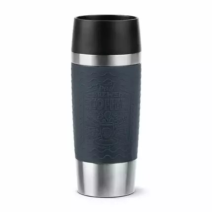 Tefal Essential Travel Mug 0.36L Stainless Steel Gray Double Wall Insulation Keeps Hot Drinks 3 Hours Cool 6 Hours Stainless Steel Silicone Coating Travel N2021510